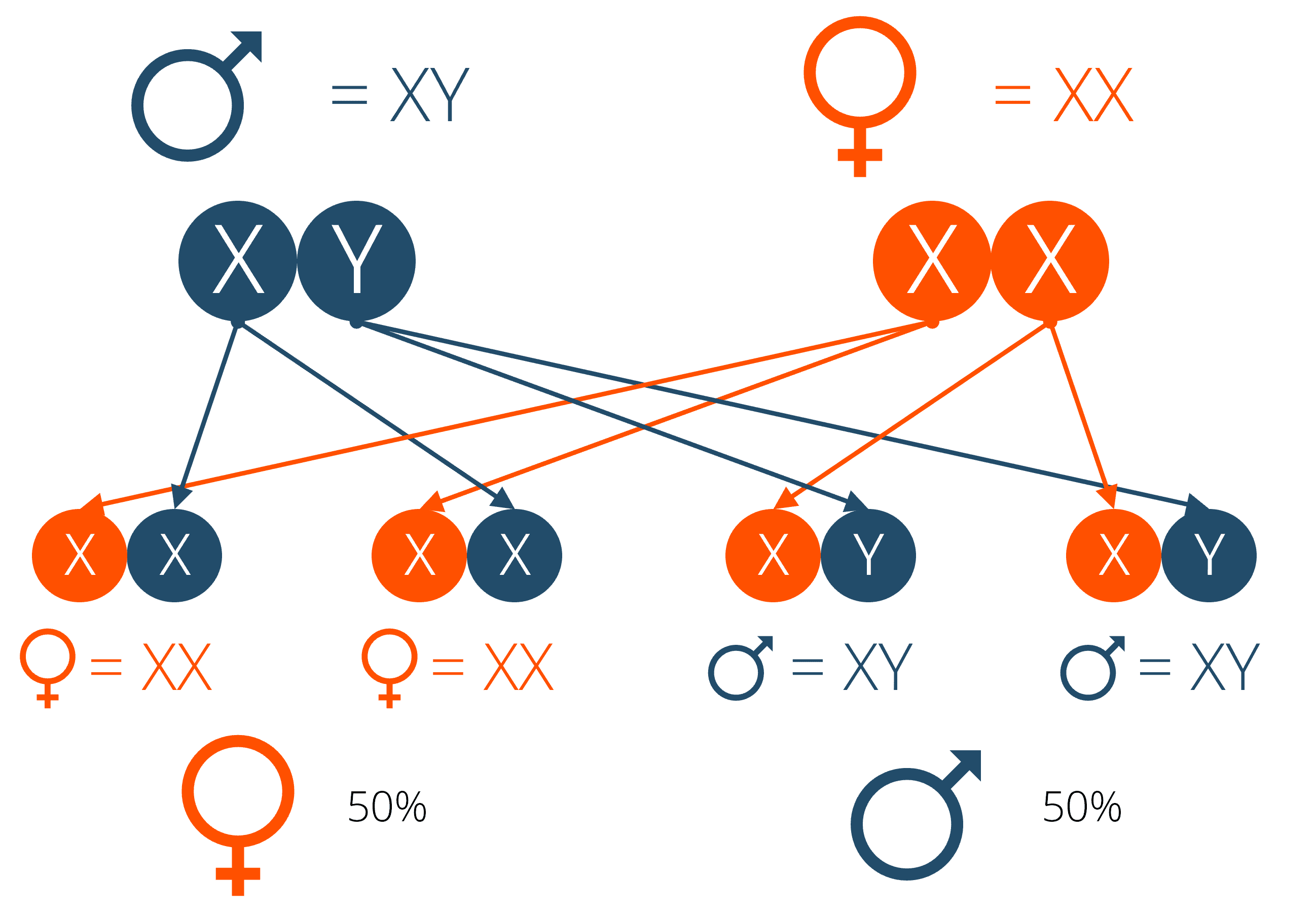 To understand tilapia genetics, we first need to step back to 10th-grade science class and refresh our basic knowledge of genetics. Every mammal has two sex chromosomes, which are either X or Y. All males carry the Y chromosome while females carry the XX chromosome. Statistically, 50% of offspring are male and 50% female.